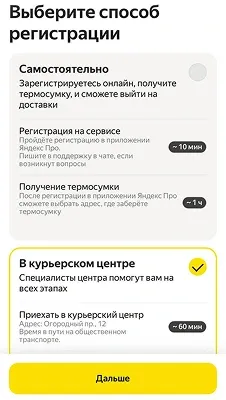 Выберите способ регистрации “В курьерском центре”
