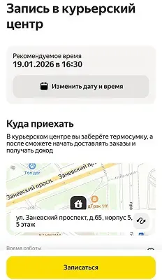 Выберите удобное время для посещения Курьерского центра и нажмите “записаться”